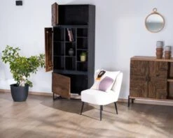 Buffet Haut Moderne Finition Bois Brut Et Noir « Cachou Chic » Avec Portes Et Niches