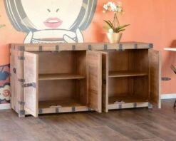 Buffet En Bois Naturel Style Colonial « Kerala » 4 Portes