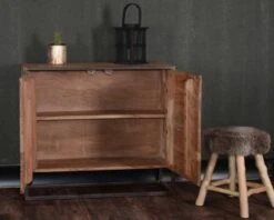 Bahut 2 Portes Bois Massif Et Métal En 88 Cm « Manhattan »