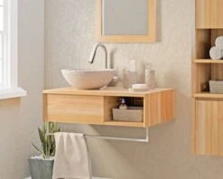 Meuble Sous Vasque Suspendu En Teck Avec Porte Serviette 80 Cm « Tika »