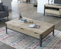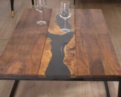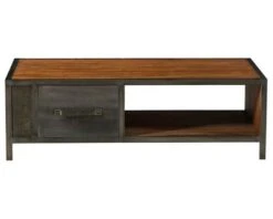 Table Basse Style Ethnique Acacia Massif Avec Insert Résine « Membatu » Structure Métal Noire