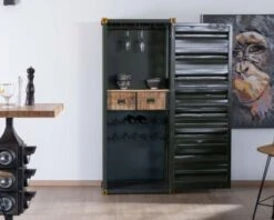 Rangement Bar Style Container Esprit Récup En Métal Vert « Crazy » Haut. 178cm