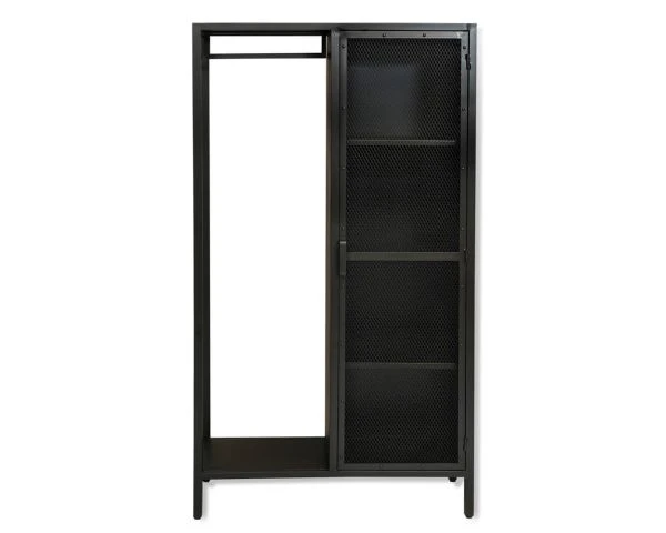 Vous profiterez de votre nouvelle armoire-penderie de 100x40x180 cm (L.xP.xH.) pour classer vos dossiers et suspendre votre trench ou votre blazer dans votre bureau. Dans votre entrée, toute la famille pourra suspendre sa veste et profiter d’un casier pour stocker chaussures, foulards et bonnets par exemple. Pour apporter une note de couleur, disposez un panier cubique dans chaque compartiment. La porte grillagée saura mettre en valeur votre organisation pour un rendu graphique supplémentaire. Dans une chambre, votre penderie vous permettra de disposer sur cintres vos robes ou chemises et chaque casier accueillera jeans et pulls pliés.