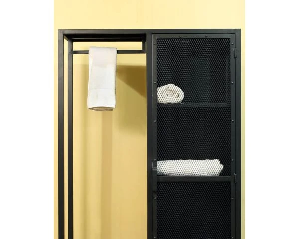 Si vous souhaitez créer le dressing parfait, sachez que la gamme « Atelier/Kraft » est composée de plusieurs modules de rangement. Vous pourrez choisir d’autres meubles pour compléter votre armoire de style vestiaire et réaliser la combinaison qui répondra à vos besoins et à vos envies. Par exemple, vous retrouvez cette armoire en version étagères sous la référence #8723.