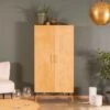 Avec sa structure dans l’air du temps en lattes de manguier verticales et ses coins arrondis, l’armoire vestiaire « Slender » convient aux petites comme aux grandes chambres à coucher. Votre ado sera heureuse de profiter de ce meuble de rangement de 165 cm de haut pour organiser ses tops et ses jeans. Son armoire sera sublime devant un mur clair et accompagnée de touches de vieux rose. Les pieds cylindriques en métal noir apporteront ce qu’il faut d’épure et de modernise. Les portes s’ouvriront facilement avec leurs adorables poignées boutons et resteront bien fermées grâce aux aimants.