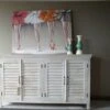 Profitez de ses caissons pour organiser votre vaisselle et votre linge de maison. Les 2 portes centrales renferment un grand module séparé par un montant aux dimensions intérieures de L.90 x P.41 x H. 23 et 26 cm tandis que les 2 portes latérales s’ouvrent sur des caissons de dimensions intérieures de L. 42 x P. 41 x H. 29 et 31 cm.