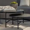 Matières : Tissu Sunbrella® gris foncé, garnissage mousse QuickDry, structure et pieds en aluminium noir