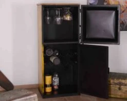 Votre nouveau meuble est unique. Comme vous. Réalisé avec soin avec du bois naturel et du métal upcyclé, ce bar jaune et coloris métal brut ne manque pas d’audace. A lui seul il donne le tempo à une déco plus sage. Facile à ouvrir grâce à ses poignées métalliques ergonomiques, il renfermera avec soin vos verres à pieds et autres ainsi que vos différentes bouteilles d’apéro tout en étant très esthétique. Grâce à ses dimensions de L.53 x P.40,5 x H.130 cm, il convient aussi aux petits espaces qui souhaitent afficher leur originalité.