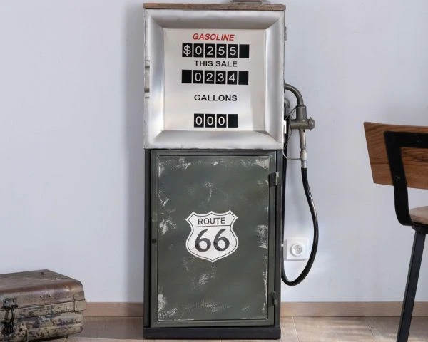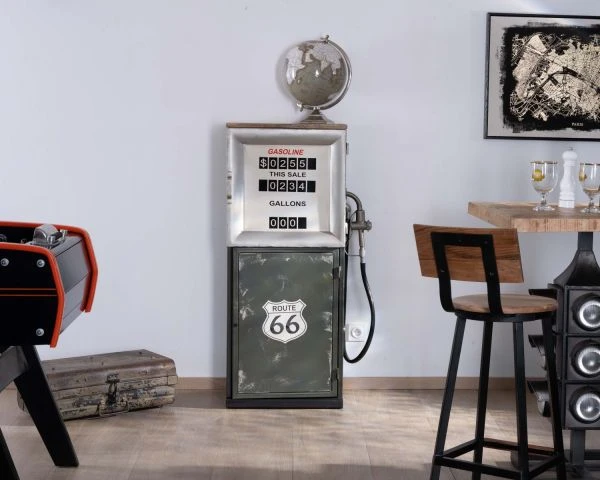 Véritable objet de décoration, original et pratique, le meuble de bar pompe à essence s’impose comme le point de départ de moments de convivialité où les anecdotes de voyages de chacun rempliront votre salon d’une atmosphère chaleureuse et dépaysante.