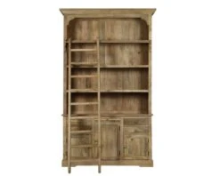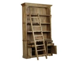 Exposez livres et décoration sur les quatre étagères de cette bibliothèque en bois naturel. Son design authentique et la teinte chaleureuse du bois de manguier ravira un très grand nombre d’entre vous j’en suis sûre. On s’imagine déjà près de la cheminée le soir tombé et tous nos livres qui nous plongent dans des aventures merveilleuses… En vous parlant de ce meuble, je pense de suite à Belle, qui je la vois, grimperait sur l’échelle coulissante pour saisir son roman préféré bien rangé en haut du meuble à l’abri de mains curieuses… Vous avez besoin de transformer votre salon en piste de bal ? Retirez alors tout simplement l’échelle avant de la remettre en place le lendemain sur son rail en bois et l’affaire sera réglée.