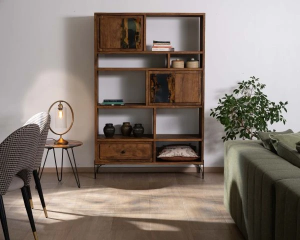 Bercé par le tempo enivrant du bois d’acacia, votre séjour ou votre bureau se transforme en une pièce chaleureuse, porteuse de cachet grâce à la présence de cette bibliothèque au caractère ethnique et affirmé.