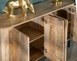Votre nouveau bahut en bois présente des dimensions généreuses de 180 cm de long et de 80 cm de haut. Sa profondeur de 45 cm vous permettra de ranger un très grand nombre d’affaires. Dans votre salle à manger vous aurez de quoi stocker de nombreuses assiettes et plats de service. Sans montants centraux, les caissons offrent de larges espaces de rangement.