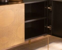 Alliant le noir intemporel au laiton doré ultra chic, le grand buffet « Gilt Antique » assure un design contemporain éclatant !