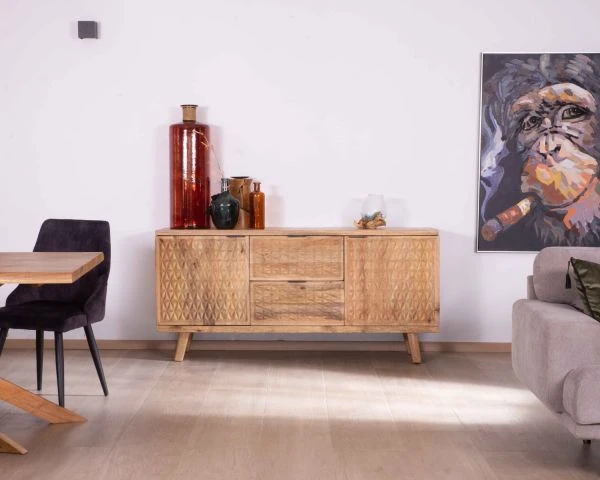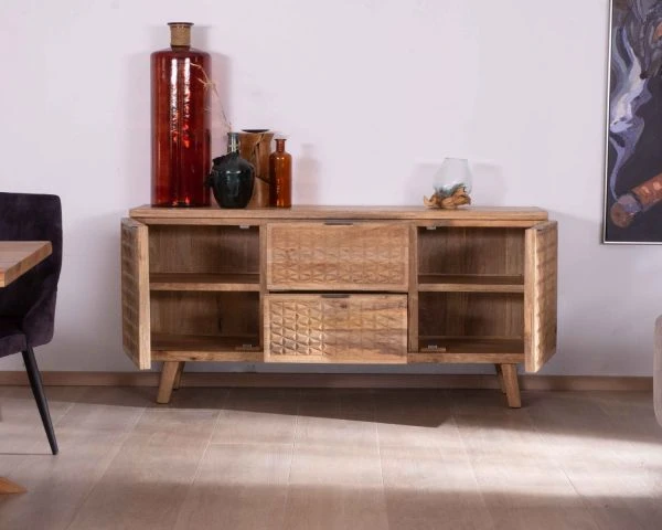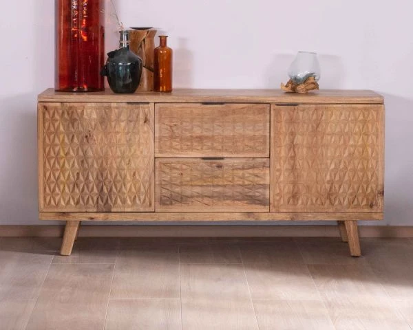 Avec son décor sculpté, le buffet en bois « Zill » possède ce petit twist qui fera toute la différence !