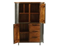 Placé contre un mur clair, ce meuble industriel attirera immédiatement l’attention par ses couleurs chaudes mais pourra aussi bien convenir à une pièce à la décoration plus marquée.