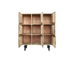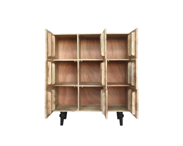 On aime les portes sculptées de ce meuble de rangement avec leur motif organique, vivant et qui rappelle aussi bien les ondulations du sable après le passage des vagues que les nervures des végétaux. On aime son aspect ultra pratique et ses 9 compartiments qui permettent à votre famille de profiter d’un meuble aussi élégant que fonctionnel.