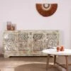 Dans ses différents rangements, vous pourrez organiser facilement vos affaires. Dans votre véranda aménagée, ce meuble de 170 cm de long vous permettra de stocker la vaisselle destinée aux repas du dimanche tandis que dans une cuisine, vous pourrez bien organiser vos serviettes et torchons, vos petits appareils ménagers ou votre épicerie sèche pourquoi pas. Les enfants adoreront prendre un gâteau ou un bonbon accompagné d’un fruit disposé dans une coupe placé sur le plateau en bois. Dans votre salle à manger, vous disposerez fièrement sur le plateau supérieur des cadres photos, une lampe à poser ou des plantes vertes pour créer une ambiance raffinée mais décontractée.