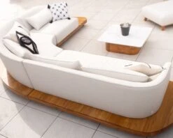 Laissez-vous charmer par ce luxueux canapé en angle d’extérieur de la collection « Haruku Island » qui incarne l’élégance et transforme chaque moment en plein air en une véritable expérience de détente et de bien-être.