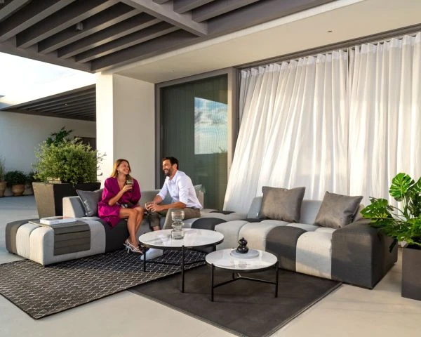 Votre nouveau meuble d’extérieur est recouvert d’un tissu imperméable Sunbrella®. Cette marque française est reconnue dans le monde entier pour sa fabrication de tissus de très grande qualité garantissant à votre banquette une résistance aux intempéries, aux UV et aux moisissures. Votre canapé est alors protégé de l’eau et peut rester dehors sans problème. Le galbe de ses assises et ses lignes contemporaines sont sublimées par des couleurs intemporelles. Les finitions haut de gamme et la structure en aluminium assurent la qualité et la longévité de votre produit. Vous êtes certains de faire un investissement à long terme et de faire un achat écologique : les produits réalisés avec les tissus Sunbrella® sont ancrés dans des principes de développement durable et ne requièrent pas un remplacement fréquent. Vous profitez alors de votre jardin tout en préservant les ressources.