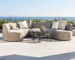 Le salon d’angle incurvé en angle de la collection « Kacang » en tissu Sunbrella est une option de mobilier d’extérieur de haute qualité qui combine style, confort et durabilité. Le tissu Sunbrella est réputé pour sa résistance aux intempéries, aux rayons UV et aux taches, ce qui en fait un choix idéal pour une utilisation en extérieur.