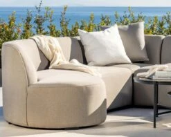Les coussins rembourrés du salon d’angle en tissu Sunbrella offrent un confort moelleux pour se détendre et se prélasser. De plus, le tissu est respirant, ce qui permet une meilleure circulation de l’air, évitant l’accumulation de chaleur par temps chaud.