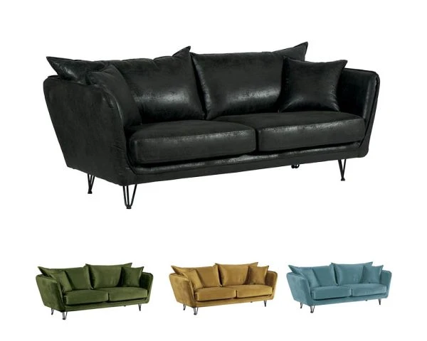 Revêtu d’un tissu au toucher velours, le grand canapé « Hasting» est assez audacieux. Ses lignes vintages et ses pieds originaux en métal lui confèrent une allure folle sans pour autant oublier la notion de confort… En parlant de confort, votre nouveau canapé en tissu repose sur une structure en pin massif et dispose d’un rembourrage en mousse haute densité. Le tout pour vous offrir un maintien optimal au quotidien. Il est important de savoir qu’une assise de fauteuil ou de canapé doit idéalement être garnie d’une mousse à la densité de 30 à 35 kg/m3. La bonne tenue dans le temps de votre meuble sera ainsi assurée et vous pourrez en profiter plus longtemps. Détente et confort seront au rendez-vous pendant de longues années grâce à votre nouveau canapé « Hasting » !