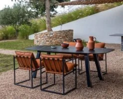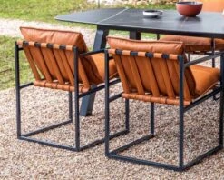 La robustesse des coutures et des finitions de ce mobilier finiront d’apporter de la subtilité à votre ameublement de jardin. La couleur camel du textile hydrofuge, l’originalité des bandes de soutien et le graphisme des lignes mettront en valeur votre pièce de vie extérieure, qui mérite tout comme votre décoration intérieure, d’être soignée et choisie avec goût et raffinement. On est si bien dehors, vous ne trouvez pas ?
