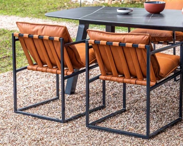 Profitez de toute l’ergonomie de cette chaise de jardin pour lire votre journal ou pour profiter d’un savoureux repas idéalement installé(e). Cette très belle chaise outdoor en aluminium anthracite et tissu aspect cuir camel de la marque française Sunbrella® donnera de la classe à votre terrasse grâce à son allure design rétro.
