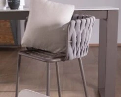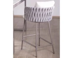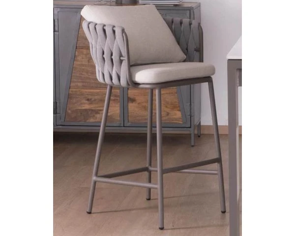 Mêlant une élégance innée à un charme nonchalant, la chaise haute en aluminium et tissu « Chinon » installe un raffinement contemporain à votre îlot de repas. Son design au chic incontestable se manifeste par le dossier enveloppant, composé de corde en textilène grise tressée soigneusement sur une structure en aluminium champagne grisé.