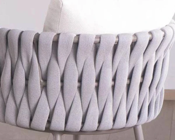 Le textilène, une fibre synthétique connue pour sa durabilité et sa résistance aux éléments, offre une texture unique au dossier tressé. Ses propriétés hydrophobes garantissent une durée de vie prolongée, même exposé à l’eau, l’humidité et à toutes les conditions climatiques.