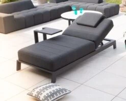 Matières : Tissu Sunbrella® gris foncé, garnissage mousse QuickDry , structure et pieds aluminium gris anthracite