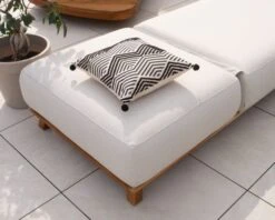 Retrouvez les autres modèles au tissu surpiquré de cette très chic collection « Lombok », la tablette en teck (#9502), les canapés d’angles et la housse de protection adaptée (#8912) disponibles sur notre site, et composez l’espace outdoor qui vous ressemble.