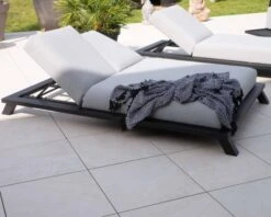 Matières : Tissu Sunbrella® gris clair, garnissage mousse QuickDry, structure et pieds en aluminium noir