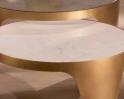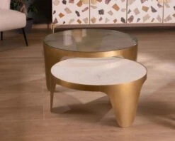Les deux tables rondes « Gilt Antique » seront mises en valeur dans un intérieur soigné et décoré avec attention. Elles pourront très bien aussi se marier avec un mur de couleur vert mat ou corail pour plus de féminitude. Si elles sont prévues à la base pour un usage au salon, elles trouveront aussi leur place dans une véranda par exemple. Vous pourrez mettre en valeur vos plantes les plus précieuses sur la table de 91 cm de diamètre et disposer vos magazines de déco sur le plateau de 79 cm. En tout cas, elles ne manqueront pas de vous rendre service, qu’elles soient imbriquées ou non.