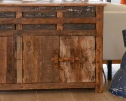 Du fait de l’utilisation de matériaux recyclés, chaque buffet est véritablement unique et des différences d’aspect et de masse peuvent être observés d’un meuble à l’autre. Nous attirons votre attention sur le fait que les articles de cette collection sont assez lourds, merci de prendre cette information en considération avant votre achat.