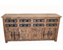 N’attendez plus pour donner un look ethnique plein d’authenticité à votre séjour grâce à cette originale enfilade issue de la collection « Népalaise ». Réalisée à partir d’anciens plateaux de boulangerie en métal et de bois exotique recyclé, cette enfilade comblera toutes les attentes des amateurs de meubles solides bourrés de personnalité.