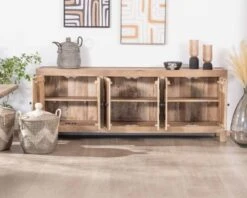 Ce grand buffet à six portes est divisé en trois compartiments de 65 cm de largeur intérieure utile et dont l’ouverture dénuée de montant central permet un accès facile pour ranger les objets les plus encombrants.