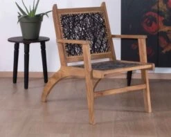 Conçu à la main de manière traditionnelle, ce fauteuil atypique vous permet de vous délasser. Vos bras reposeront avec délice sur ses deux accoudoirs tandis que le cordage noir et gris épousera vos formes avec ce qu’il faut de fermeté pour que vous vous trouviez dans une position idéale.