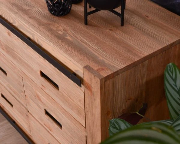 Aussi pratique qu’esthétique, votre buffet en pin est aussi robuste et pérenne. Ses lignes sans fioritures vous permettent d’en profiter sans vous en lasser. Avec son dos en médium noir, votre meuble pourra même servir visuellement de séparation dans votre pièce de vie ouverte. Il délimitera l’espace repas de l’espace salon sans aucune peine.