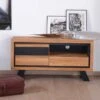 Avec des dimensions de 160 x 55 x 40 cm (longueur x hauteur x profondeur), votre grand meuble télé en bois naturel traité en 2 façons élira facilement domicile dans votre salon de style moderne, industriel voir même plus classique. En combinant la couleur naturelle du bois à la finition huilée et la teinte noire toujours tendance et intemporelle, le designer a su donner du caractère au meuble TV. Esthétisme et robustesse sont au rendez-vous dans votre séjour avec les meubles « Davos ».