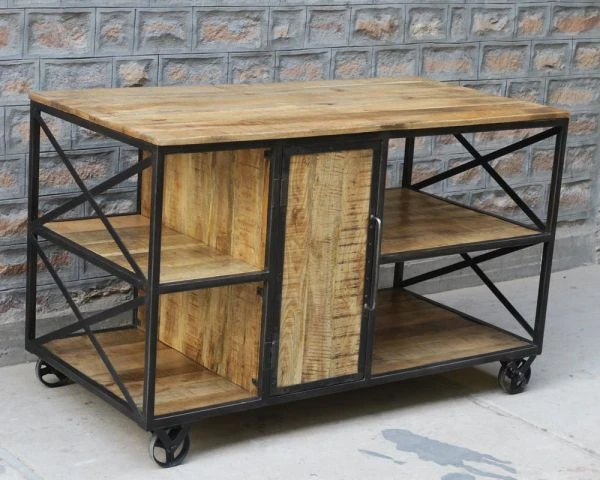 Grâce à notre îlot central de style industriel « Montana », intégrable à tout type de décoration, vous avez la parfaite alliance entre bois exotique et métal. Il se fond pour le plaisir des yeux aux cuisines anciennes et nouvelles.