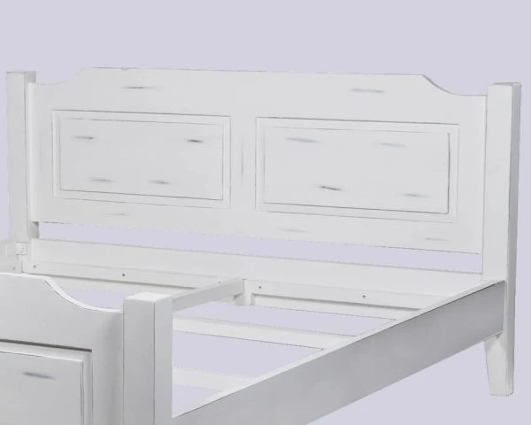 Charmant et affable, ce lit en bois exotique a été coloré en blanc avec un effet vieilli et essuyé. Avec sa personnalité douce et raffinée, votre lit vous apportera toute sa bienveillance. Ses lignes classiques et sa teinte délicate vous permettront de vous détendre sans être dérangé par des éléments visuels trop tape à l’œil et inutiles. La sobriété est de rigueur pour obtenir une chambre à coucher agréable et relaxante. Votre couchage pourra ainsi se marier à différents styles de décoration : esprit bord de mer, classique ou plus champêtre… tout lui va.