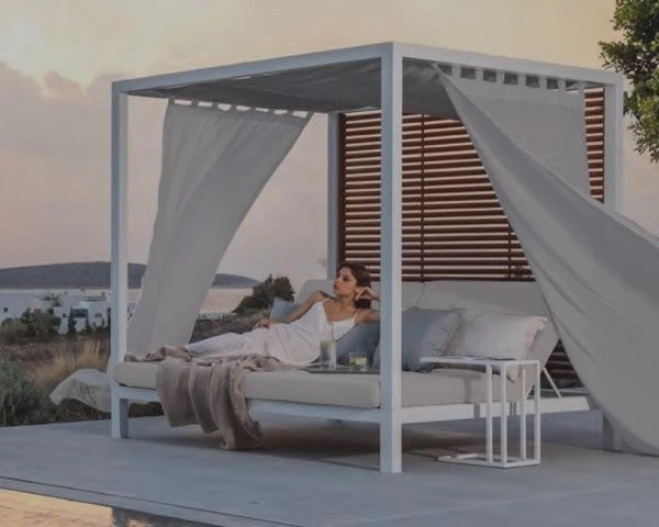 Une douce brise fait valser les voiles de votre lit baldaquin outdoor et vous emporte au pays du plaisir…