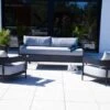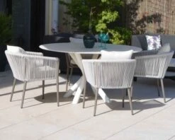 On aime être assis sur un mobilier à l’allure soignée et aux couleurs raffinées. La structure en alu coloris champagne se marie très bien à un cadre soigné et décoré avec soin. Les couleurs assortis du revêtement textile Sunproof et de la corde attirent l’œil. Traités contre la décoloration, les matériaux résistent aux UV et sont très robustes. L’alu évite la corrosion, ne retient pas les pointes de rouille. Le tissu déperlant et la mousse antimicrobienne respirent, ne retiennent pas l’eau et sèchent en un rien de temps. Après la pluie, le beau temps… Et surtout VOUS en train de profiter de repas en famille ou entre mais bien installé dans un fauteuil généreux et aussi beau que robuste. Que demandez-de mieux ?