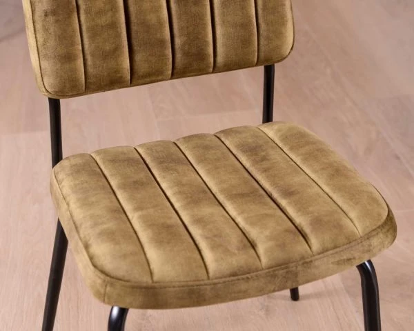 Avec leur design sobre et efficace, ces chaises en tissu aspect velours et fer offrent un esthétisme minimaliste qui se suffit à lui-même. Sans fioritures et allouées de finitions soignées, elles vont à l’essentiel pour un rendu efficace au service de la détente.