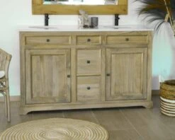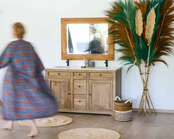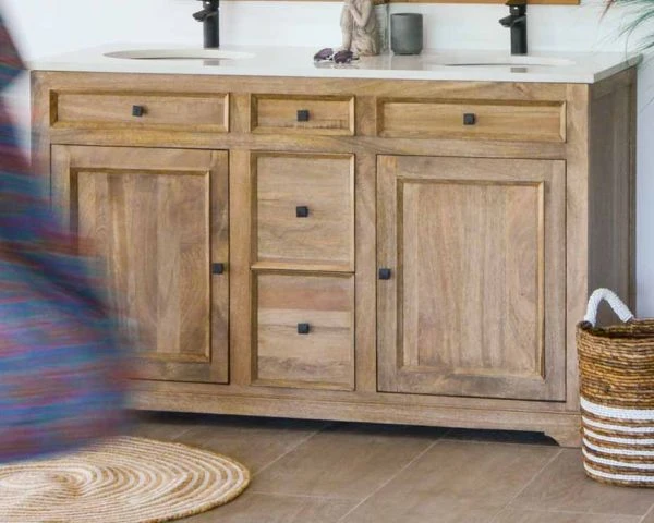 Matières : Manguier massif, plateau quartz, vasques céramique