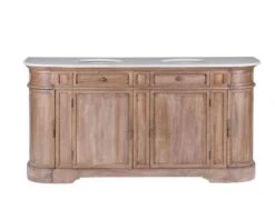 Notre meuble vasque « Marie-Antoinette » est principalement composé de bois de manguier. Également appelé mango, ce matériau est un bois particulièrement solide qui montre de jolies nuances rendant chaque pièce unique. Le bois ayant été blanchi, ce meuble donnera un aspect lumineux à votre salle de bain. On retrouve même sur le meuble un léger rechampi très discret au niveau des angles et des moulures.