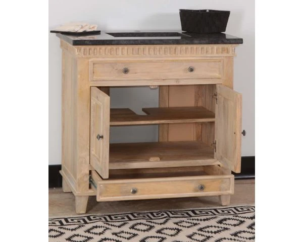 Ca y est ! Vous vous êtes lancés dans les travaux de votre salle de bain. Le type de douche, le carrelage, les luminaires… tout est choisi. Mais quels rangements, quel type de lavabo vous faut-il ? Laissez-nous vous présenter notre meuble simple vasque « Marie-Antoinette » en bois massif et granit qui pourrait bien vous séduire…