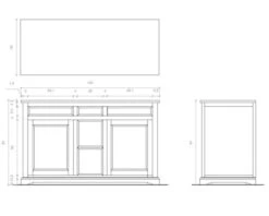 Largeur : 140 cm, Profondeur : 56 cm, Hauteur : 85 cm