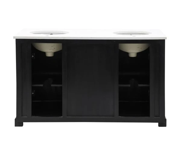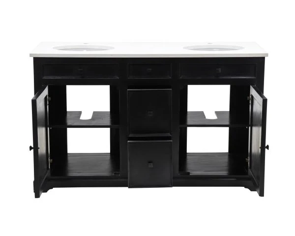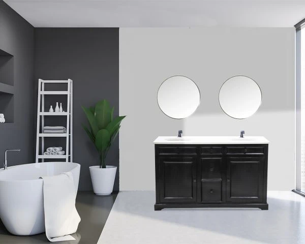 Matières : Manguier noir, plateau quartz, vasque céramique
